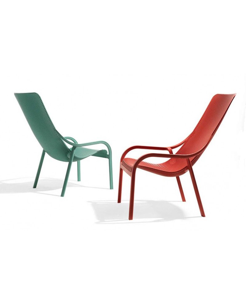 Le fauteuil NET LOUNGE est très confortable, son assise est large, ces motifs ajourés et son Design aux lignes sinueuses invitent au repos, assise abaissée, pince pour tenir la serviette de plage, empilable par 2, poids léger de 5.3 kg, facile d'entretien à l'eau savonneuse, possibilité d'avoir un coussin appuie tête hydrofuge, anti-tâches et anti-moisissure.